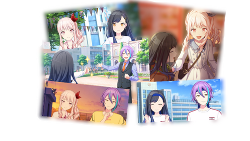 VBS, Ena Shinonome, Mizuki Akiyama, Kagamines, Saki Tenma, Minori Hanasato, Emu Otori, Rui Kamishiro, Yuukei Quartet (KGPR), Hanamaru Kunikida, You Watanabe, Mari Ohara, Shinjiro Aragaki, Ken Amada, Mitsuru Kirijo, Akihiko Sanada, Inigo/Laslow, Soleil, Ophelia, Caspar Von Bergliez, Linhardt von Hevring, Dorothea Arnault, Ferdinand Von Aegir, Claude von Riegan, Hilda Goneril, Cyril